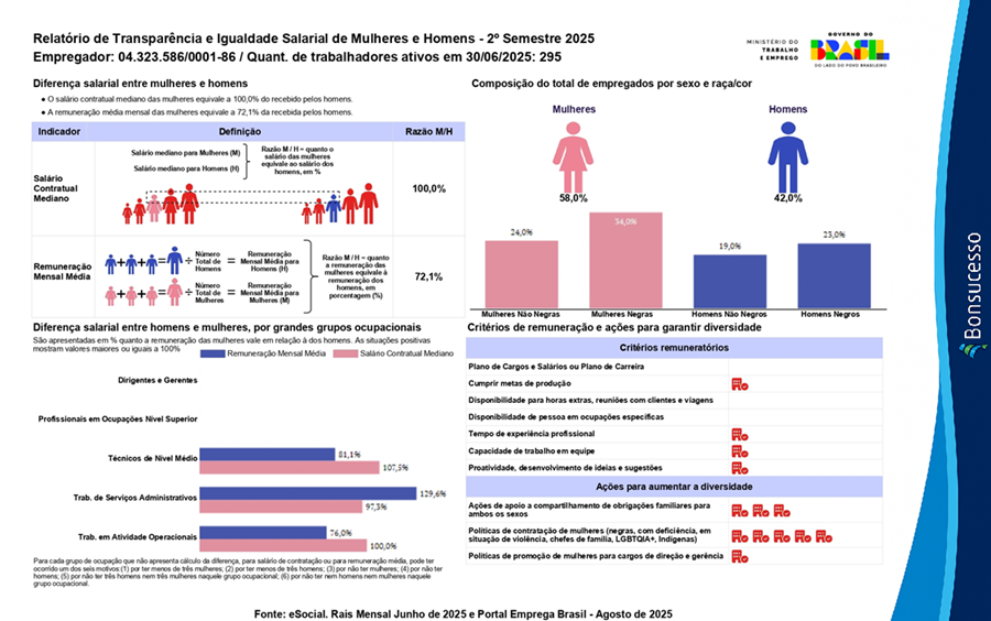 Com orgulho, divulgamos nosso Relatório de Transparência Salarial, reafirmando nosso compromisso com a equidade entre mulheres e homens. Seguimos acreditando em um futuro em que talento, dedicação e competência são os fatores que realmente fazem a diferença.